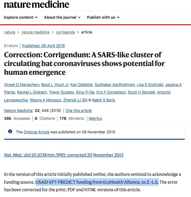 From Dec. 2020: “Peter Daszak’s EcoHealth Alliance Has Hidden Almost $40 Million In Pentagon Funding And Militarized Pandemic Science” — documents even more money to EcoHealth from USAID.