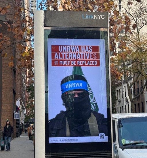 Israel just started running ads around the UN, trying to destroy UNRWA, the last lifeline for Gaza, in furtherance of their genocidal project: