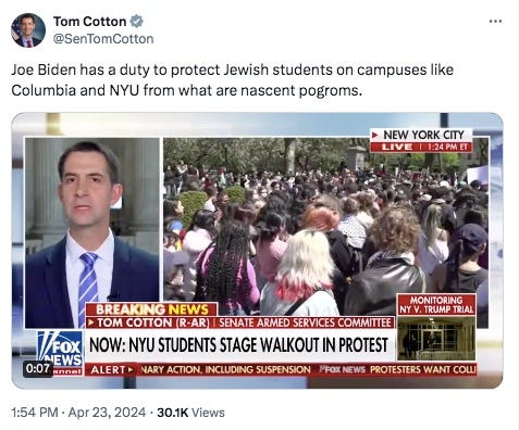 Part of the pressure from the government to universities is a cutoff of funding if they don't clamp down more on protests.