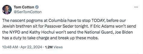 Which was of course ridiculous, not least of all because the student protests had tons of Jewish students and had Seders. But he persisted: