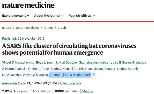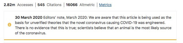 In March of 2020, a note was added to the Nature Medicine article warning readers against making obvious connections about the possibility of lab origin of Covid: