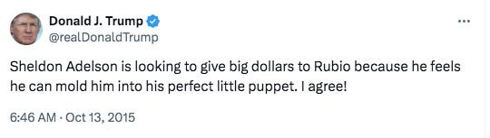 Of course Miriam Adelson just spent $100m on Trump’s 2024 campaign.
